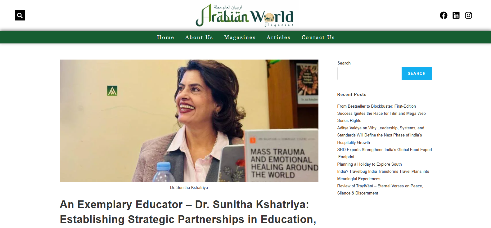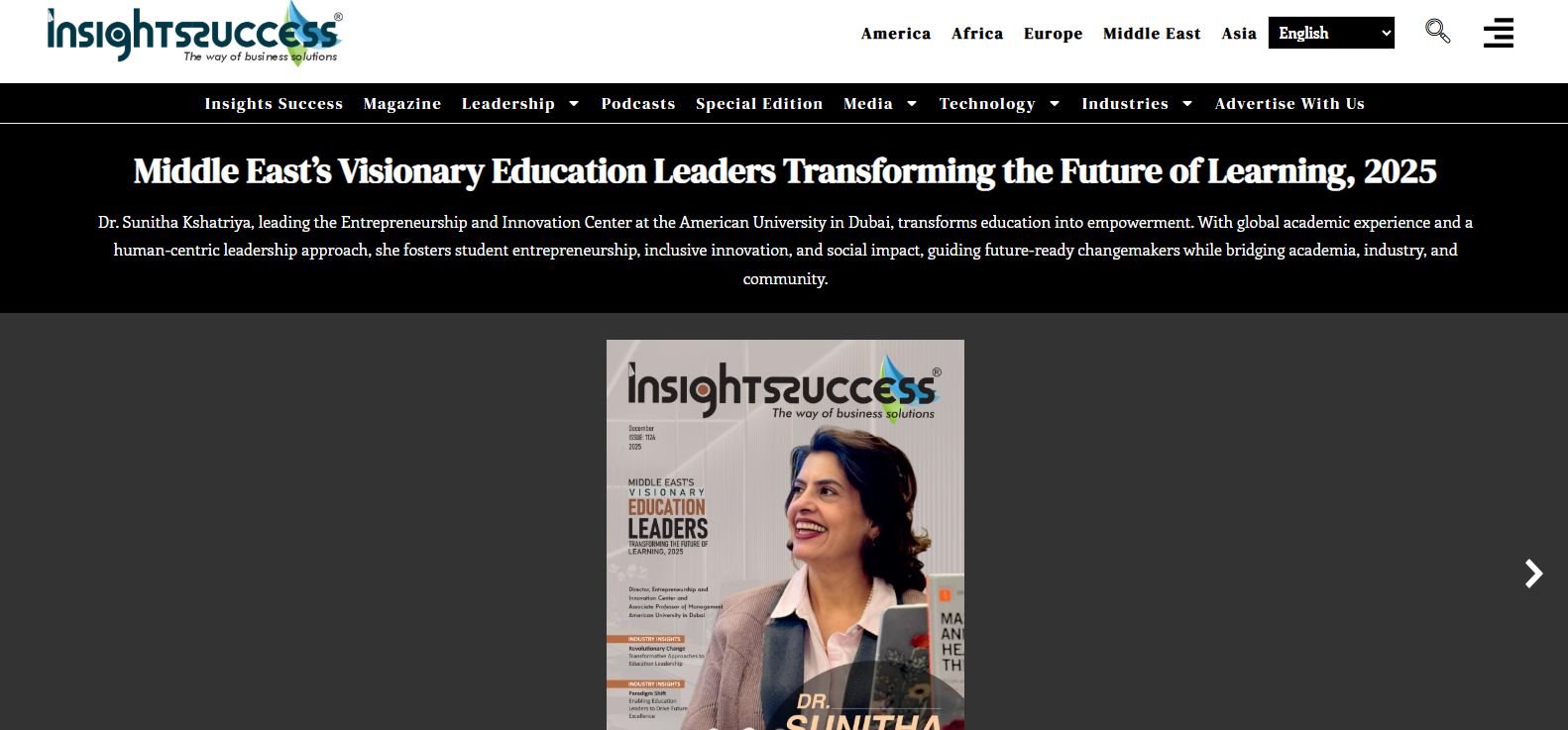 Recognition in leading Middle Eastern publications for educational excellence & visionary leadership
